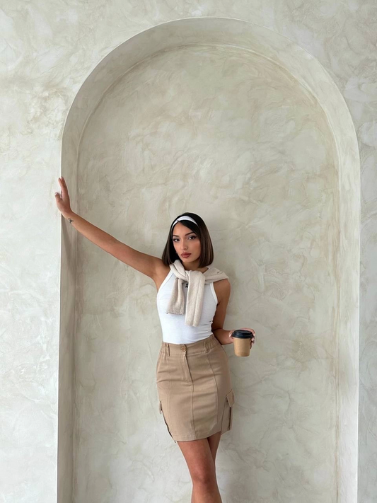 İndirimCleo Kargo Cep Mini Etek – Bej