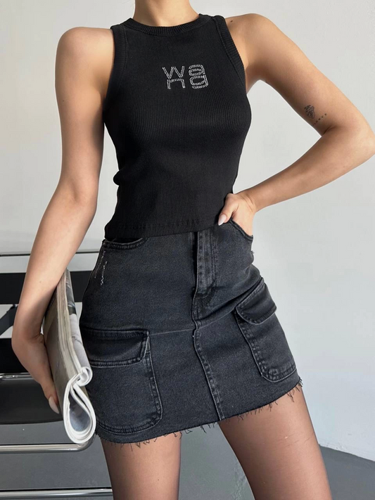 İndirimGümüş Taşlı Ribanalı Fit Atlet